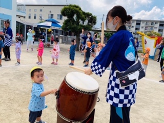 おまつりで飾る製作物や盆踊りの練習など、事前準備の段階から楽しんでいた子どもたち。