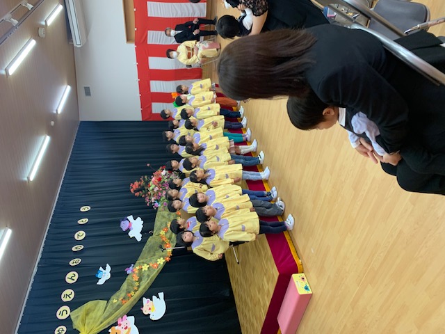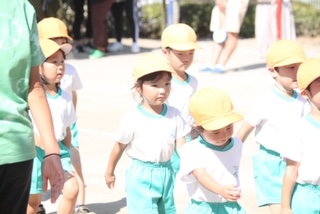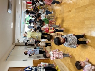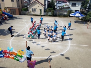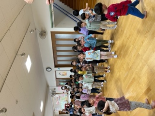 朝、ホールに全クラス集まりかっぱ体操で元気いっぱい体を動かしていると・・・