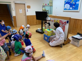 今年はかっぱさんと一緒にクイズを楽しみながら、プールあそびのお約束を確認しました。