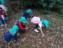 今週は、散歩先の公園で、落ち葉を拾ったり、どんぐりを拾って粘土でどんぐりケーキを作りました。